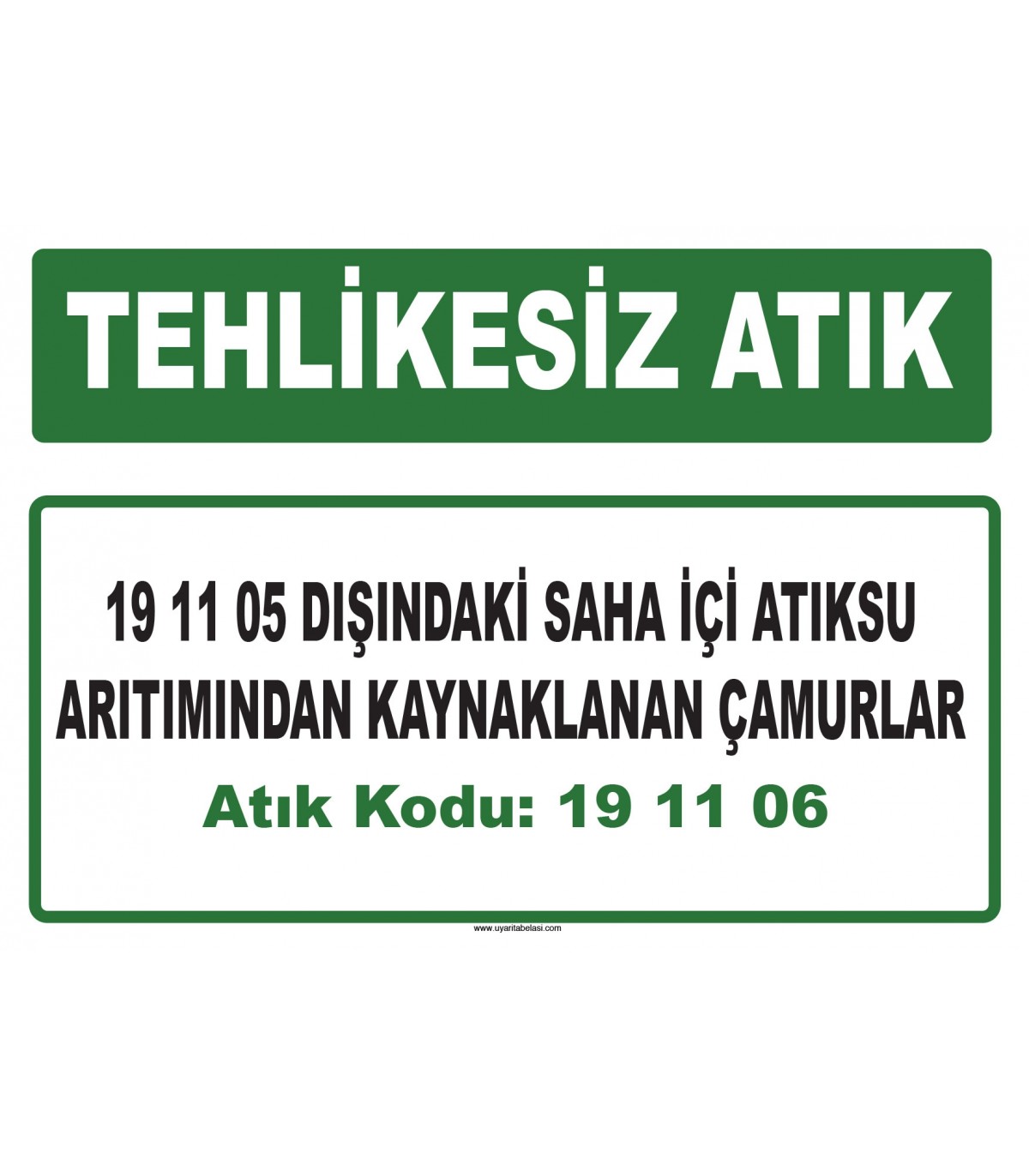 A191106 - 19 11 05 dışındaki saha içi atıksu arıtımından kaynaklanan çamurlar